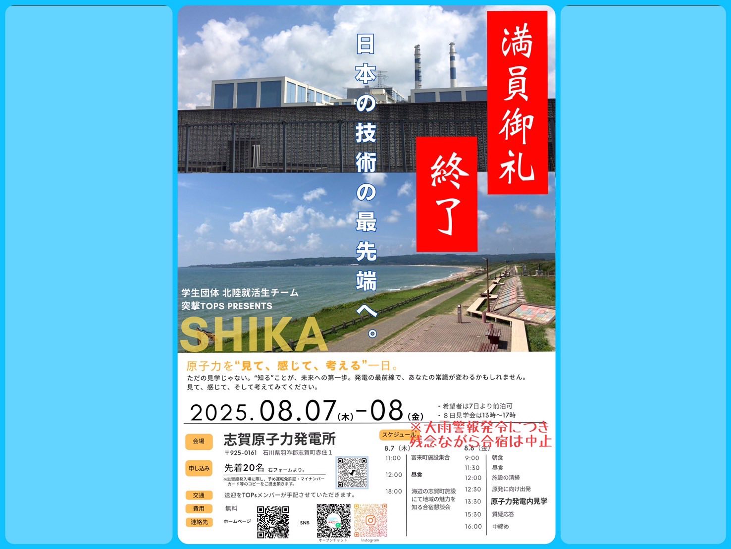 申し訳ございません!今回も告知前からほぼ満席、毎回大人気の南富山焚き火会!僅かながら増席も可能とか?ご興味がおありの学生さんは先着順になりますが、お申し込みを!(7月10日締切済)